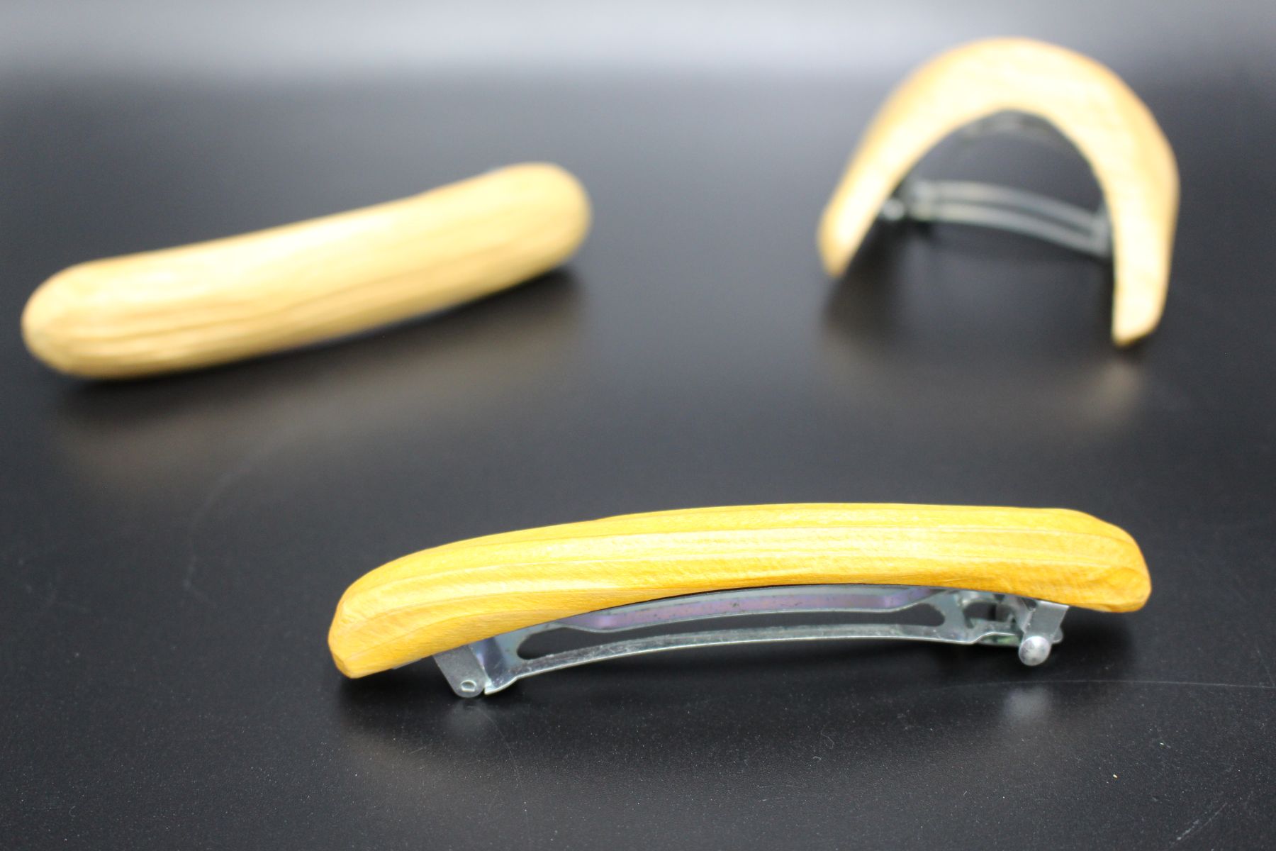 Eine sehr leichte und deshalb angenehm zu tragende Haarspange aus Holz.