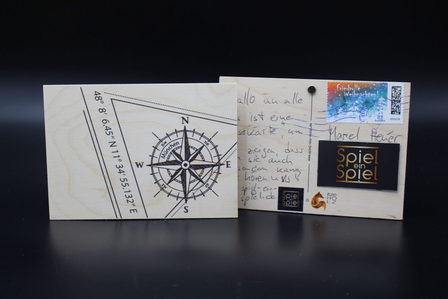 Und es gibt auch mehrere Hersteller für Ansichtskarten aus Holz.