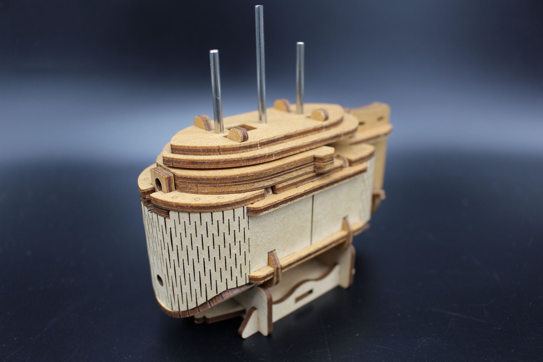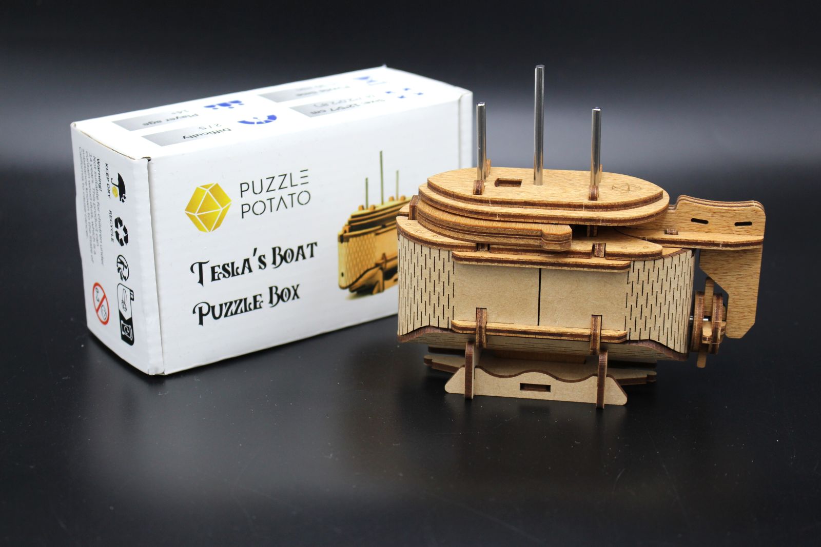 Ein Tesla-Puzzleboot (12 cm x 7 cm x 5 cm)