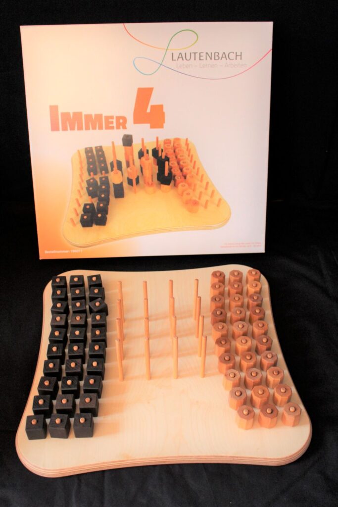 Ein Großbrettspiel aus massivem Birkenholz, das für blinde und sehbehinderte Menschen ebenso geeignet ist wie für Sehende. Ziel ist es, vier Ihrer besonderen Spielsteine – entweder dunkle Würfel oder naturfarbene Prismen – in eine Reihe zu bringen, egal wie. Dieses Spiel, liebevoll gefertigt in einer deutschen Lebens- und Arbeitsgemeinschaft, fördert das strategische Denken.